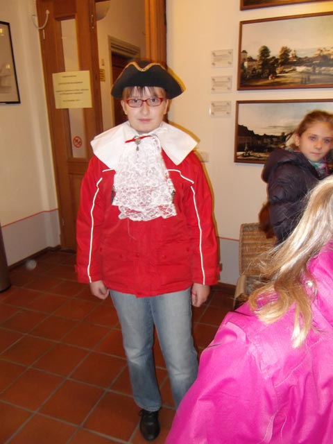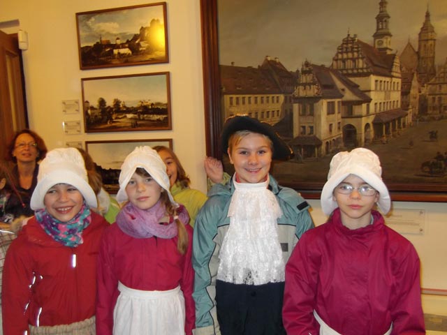 Wir liefen zum Canaletto-Haus und wurden dort von einer Frau in historischer Kleidung empfangen.