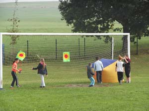 Torwandschießen, Geschicklichkeitslauf/ Sackhüpfen