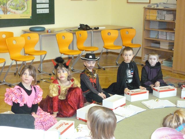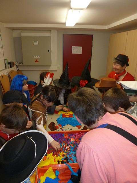 Alle Schüler kamen an diesem Tag besonders gut gelaunt zur Schule. Denn heute war alles etwas anders. Tanzen, Singen, Schreien und das Verkleiden bis zur Unkenntlichkeit waren erlaubt. An verschiedenen Stationen feierten die Kinder non stopp den gesamten Schulvormittag lang Fastnacht.