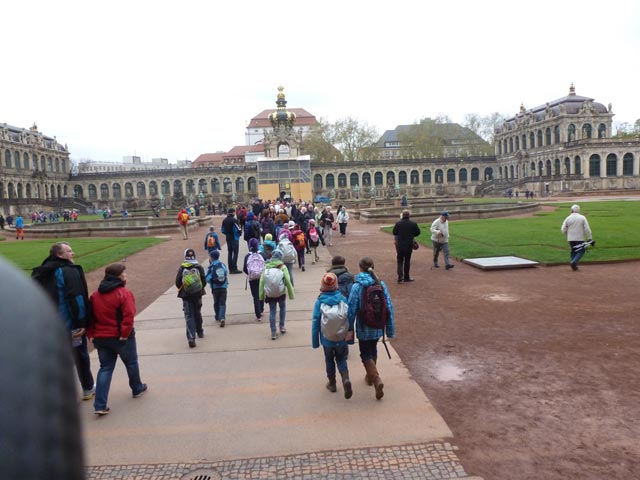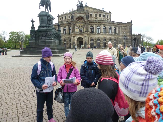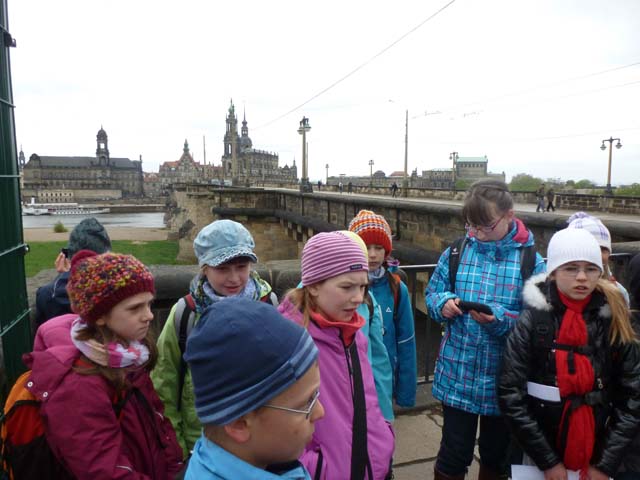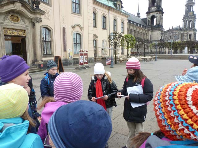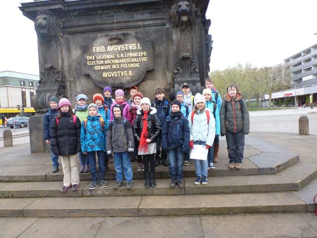 Am 15.04.2014 führte die 4.Klasse der Grundschule Langenwolmsdorf eine Exkursion im Rahmen des Sachkundeunterrichts nach Dresden durch. Da keine Stadtführung geplant war, bereiteten sich die Kinder gruppenweise selbst vor, um an ausgewählten Sehenswürdigkeiten etwas zu erzählen. Den Abschluss bildete eine Führung im mathematisch-physikalischen Salon.