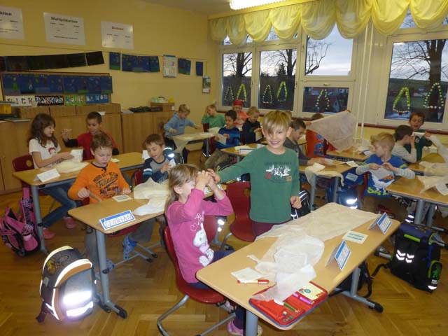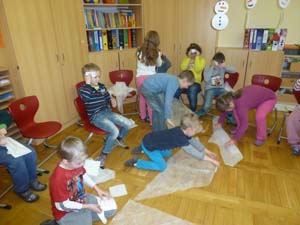 Alle Kinder mussten sich im Schulhaus umsehen, wo Verbandsmaterial zu finden ist.
