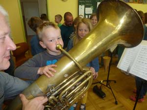 Von dem Klang, der Lautstärke und auch der Größe einiger Instrumente waren wir sehr beeindruckt. Wer wollte, durfte die Instrumente auch mal ausprobieren. Wir mussten feststellen, dass es gar nicht so einfach ist, den Instrumenten einen Ton zu entlocken.