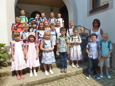 Dazu trafen sie sich mit ihren Eltern, Großeltern und Verwandten zur feierlichen Einschulungsfeier im Erbgericht.