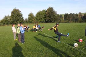 Fußballfest. Es gab 6 Stationen: Torwandschießen, Elfmeterkönig, Flankengeber, Kurzpass-Ass, Dribbelkünstler und Fußballspiel. Wer alle Stationen erfolgreich absolviert hatte, konnte das DFB Schul-Fußballabzeichen gewinnen.