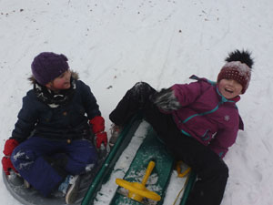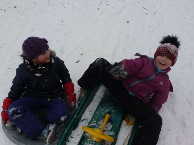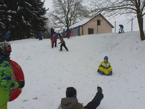 Die nächsten Sportstunden nutzten wir, um mit allen Klassen rodeln zu gehen.