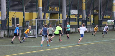 Nachdem wir wieder heruntergestiegen sind, konnten die Kinder auf dem Kunstrasenplatz des Geländes ihre Kräfte bei einem kleinen Fußballspielchen messen. Alle hatten viel Spaß und Freude und es sind auch Tore gefallen.