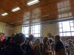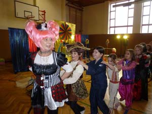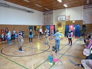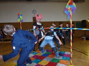 Nach zwei gemütlichen Stunden in der Schule (Bowling, Basteln, Computertechnik, Malen,….. und Bewegungsspielen) begeisterten uns die Clowns „King und Rosini“ in unserer Turnhalle. Mit Limbo, Hula Hoop, einem Spaß-Glücksrad, Zauberei und fetziger Faschingsmusik genossen alle die ausgelassene Stimmung.
