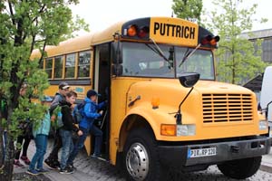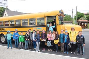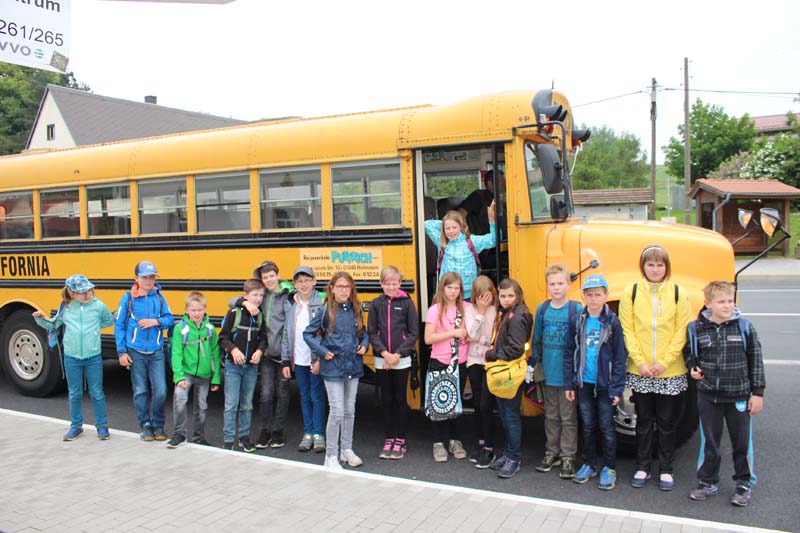 Dort stand extra für uns einer großer gelber amerikanischer Schulbus. Mit großen Augen stiegen wir ein und machten uns auf den Heimweg. Cool!