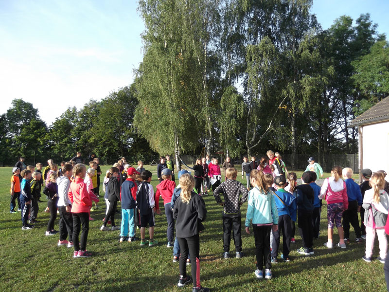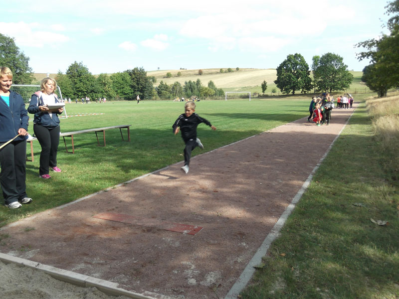 Auf den ersten Blick sah es eher nach einem großen, fröhlichen Kinderfest als nach ernsten Wettkämpfen aus. Die Schüler hatten ihren Spaß beim Dosenwerfen, Kegeln oder beim Fußballspielen. Bei genauem Hinsehen entdeckte man aber auch die drei klassischen Wettkampfsportarten (Weitsprung, Schlagballweitwurf, 50m – Sprint)