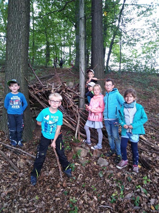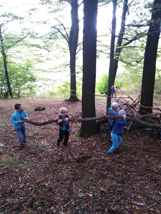 Besonders schön war das gemeinsame Bauen von Buden. Viele kleine Baumeister waren zusammen am Werk. Am liebsten wären wir noch langer geblieben.