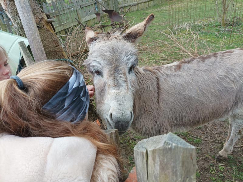 Bei Fischers konnten wir die Haltung von Schafen, Pferden, Hühnern, Kaninchen und Ziervögeln erforschen. Unser Frühstück im Heuhaufen schmeckte besonders gut.