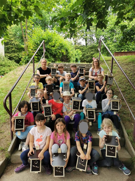 Im zweiten Teil wurden alle Kinder in die Lehrwerkstatt eingeladen. Dort durften wir mit Hilfe von Auszubildenden einen Nistkasten aus Restholz zusammenschrauben. In diesen finden jetzt viele Vogelpaare neue Nistmöglichkeiten. Zwei Nistkästen schmücken unseren Schulgarten.