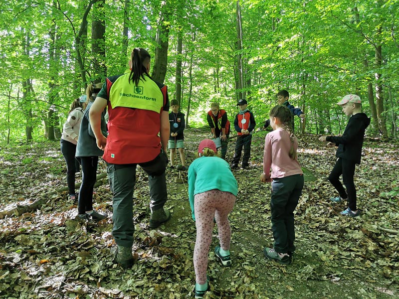 Der Sachsenforst veranstaltet jedes Jahr die Waldjugendspiele in verschiedenen Wäldern rund um Dresden. So konnten wir wieder in Neustadt bei der Götzinger Höhe dabei sein. An verschiedenen Stationen lernten die Kinder spielerisch wichtige Dinge zum Wald kennen: Baumarten sortieren, „Wie fühlt es sich an, mit einem Geweih durch den Wald zu laufen?“, Sägearbeiten mit der Kettensäge (Die Kettensäge ist ganz schön schwer!), Geschicklichkeit im Team, Müll belastet den Wald, „Was fühlst du?“ uvm. Im Anschluss gab es noch Brötchen und Wiener im Wald. Das war wieder eine gelungene Veranstaltung.